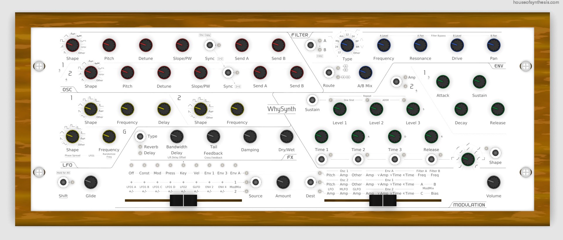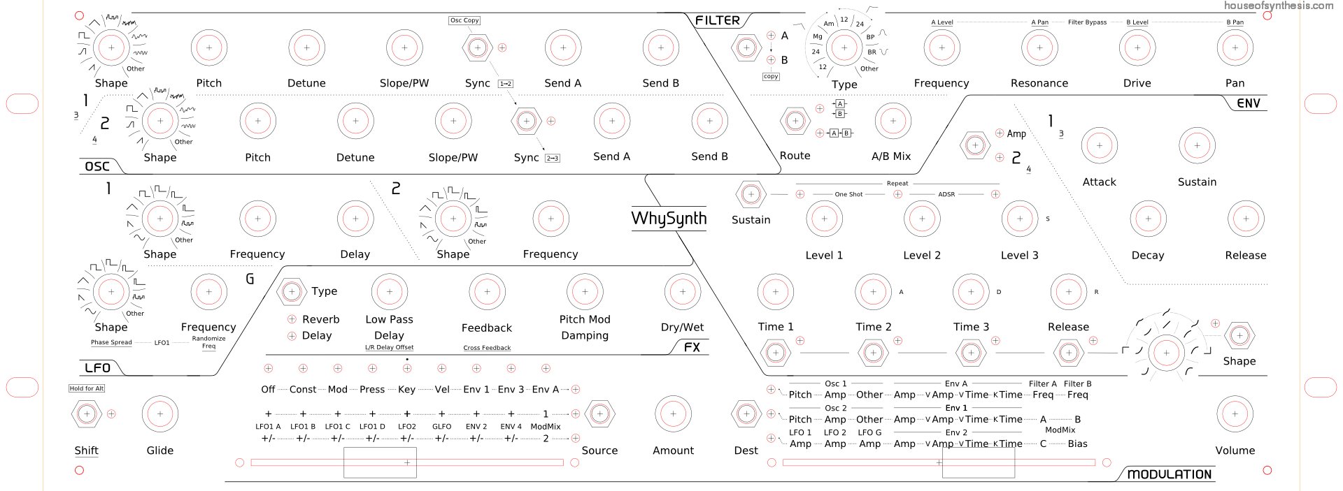 - The mapping between the hardware controls and WhySynth's controls (there's too many to replicate all of them in hardware)